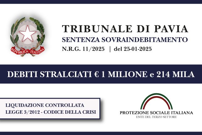Protezione Sociale Italiana intende dare un aiuto concreto alle persone bisognose eliminando qualsiasi ostacolo tra il cittadino e l’accesso alla Procedura di Composizione della Crisi da Sovraindebitamento prevista dal nuovo Codice della Crisi e dell’Insolvenza. In quest’ottica il nostro Organismo di Composizione della Crisi garantisce, salvo eccezioni, a tutti i debitori condizioni vantaggiose. Con questa organizzazione siamo convinti che verrà garantito a tutti i debitori la possibilità di accesso alla Procedura di Composizione della Crisi da sovraindebitamento. Se vuoi ricevere maggiori informazioni sulla nostra Associazione, sulla nostra carta dei valori e sul nostro progetto di soccorso sociale puoi consultare la pagina web www.protezione-sociale.it